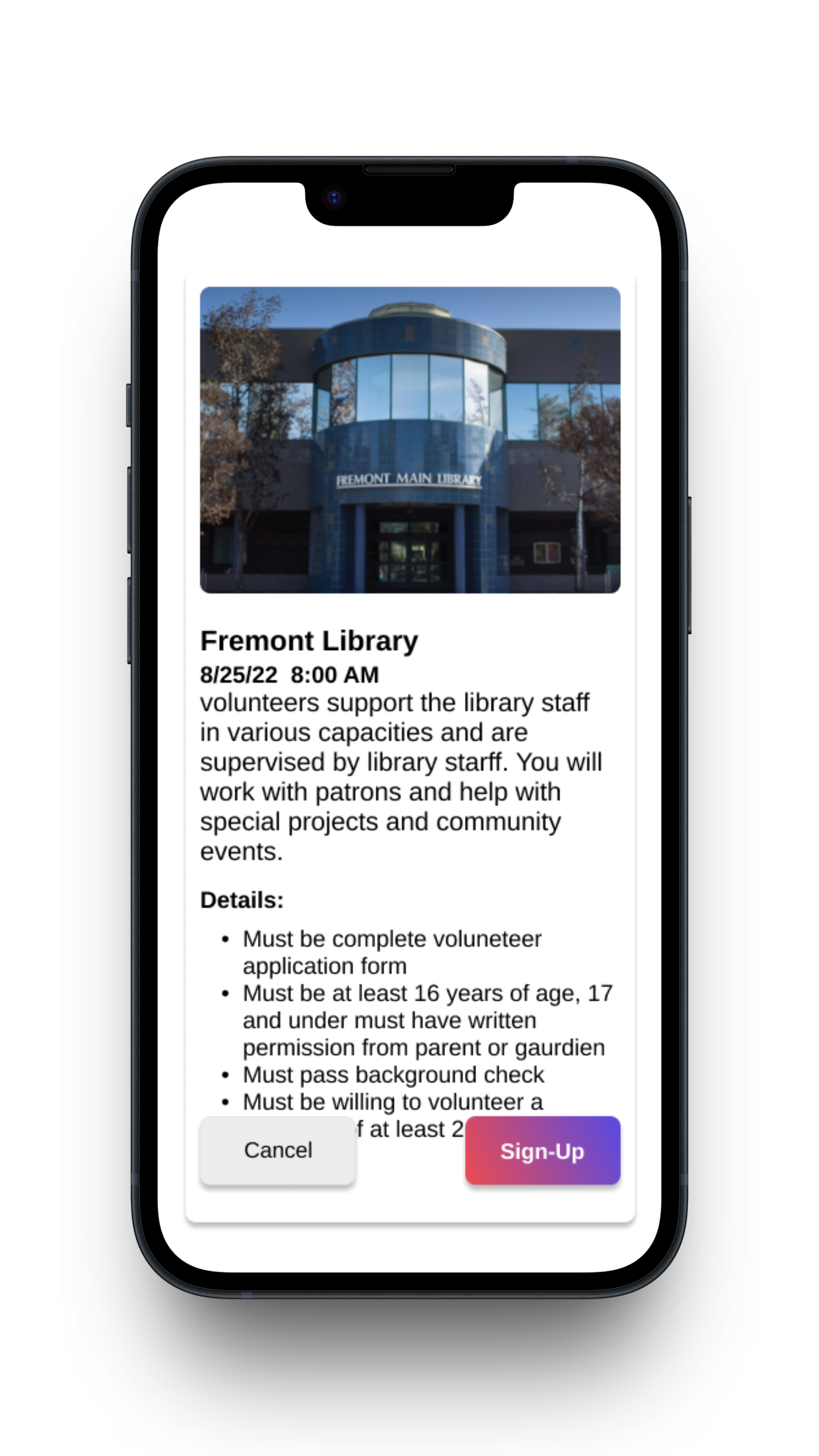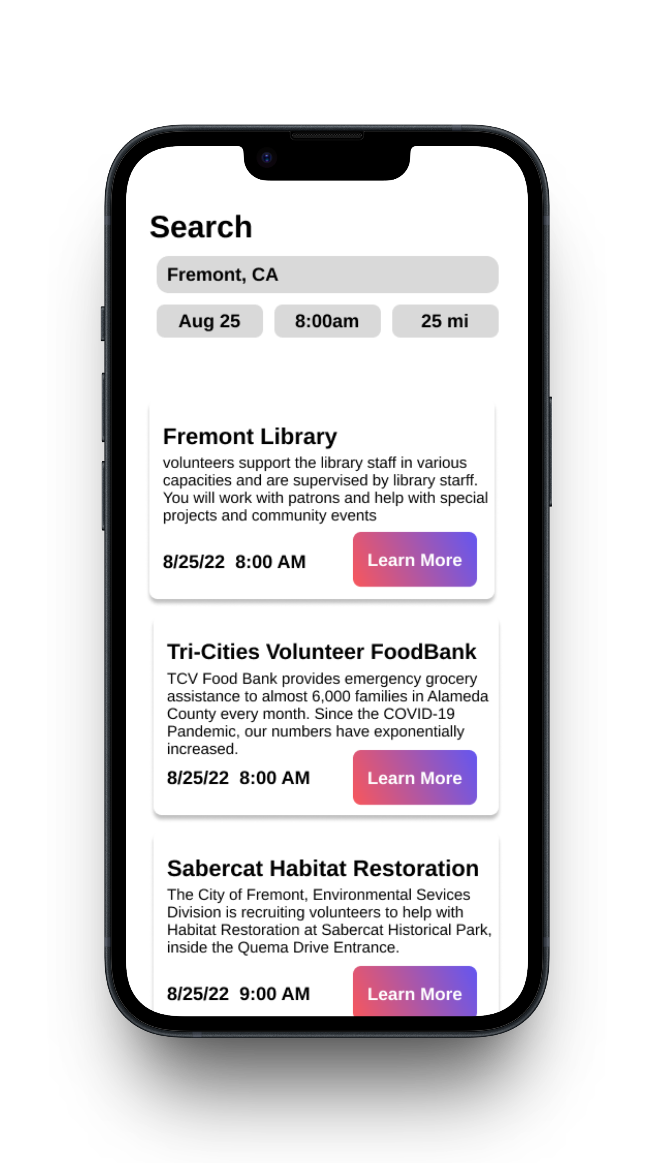 The Goal: To create a website and application that makes it easier to find and sign up for community service events.